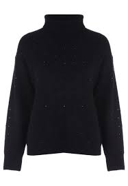 Black polo neck jumper, thin material.
