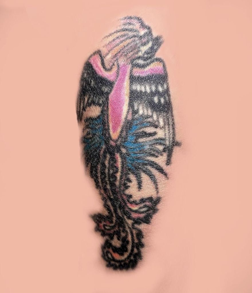 Tattoo – bird – Left arm – A bird figure similar to a phoenix