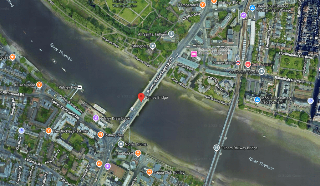 Circumstances: Body of a male found on the foreshore of the River Thames at Putney Bridge.