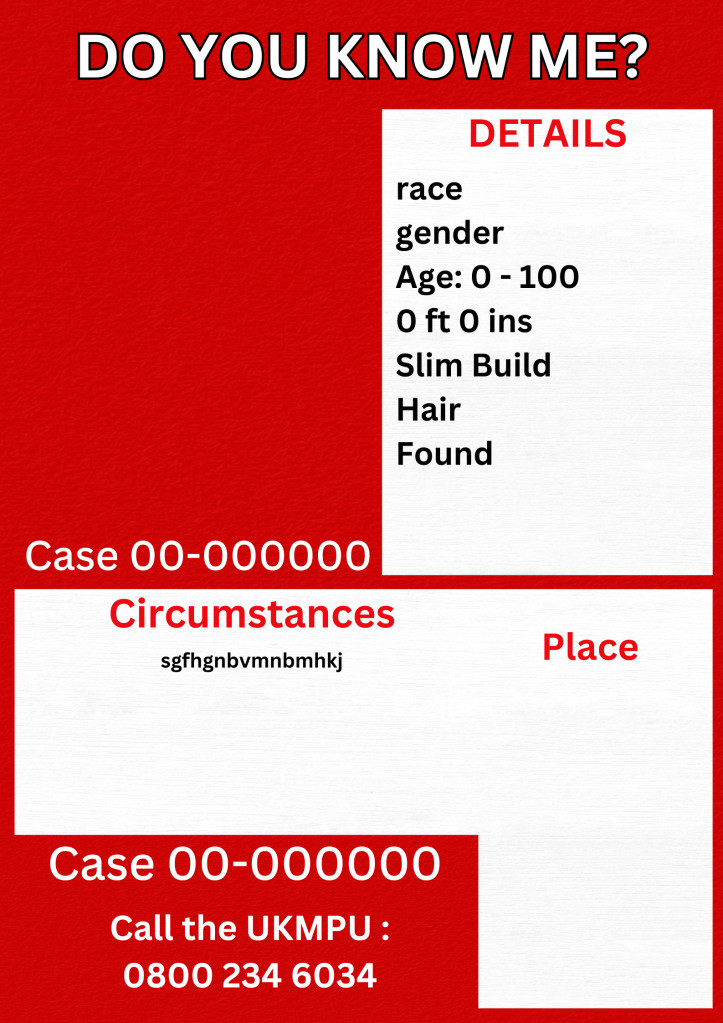 If you would like to help, please print off a poster and post it locally, You could be detrimental in solving a missing persons case. Please remember to stay safe when putting up posters.